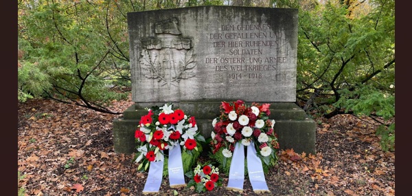 Es ist eine lange Tradition: Am Sonntag nach Allerheiligen treffen sich Mitglieder der ÖDG in Anwesenheit eines Vertreters der österreichischen Botschaft am Neuen Garnisonsfriedhof am Gedenkstein der Gefallenen der österreichischen und ungarischen Armee, um ihnen und den verstorbenen Mitgliedern der ÖDG zu gedenken. Neben einem Kranz der Öst. Botschaft in Berlin legte auch die ÖDG einen Kranz nieder.